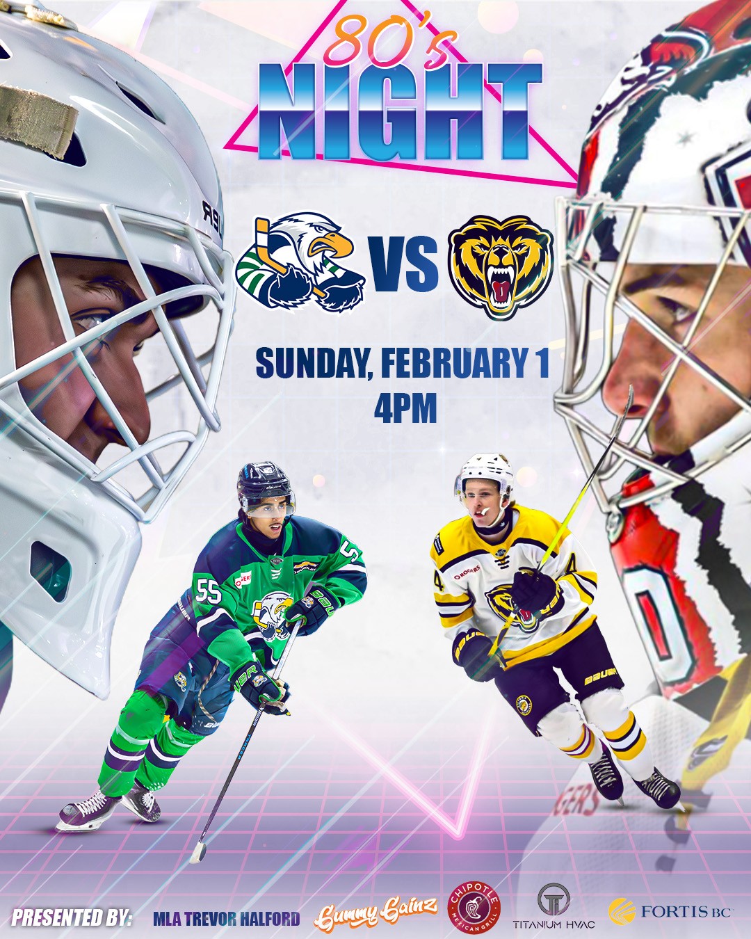It’s 80s Night / Neon Night at the Nest as the Victoria Grizzlies come to town for the second time this season! Both teams are currently on a three-game losing streak and will be looking to get back in the win column.