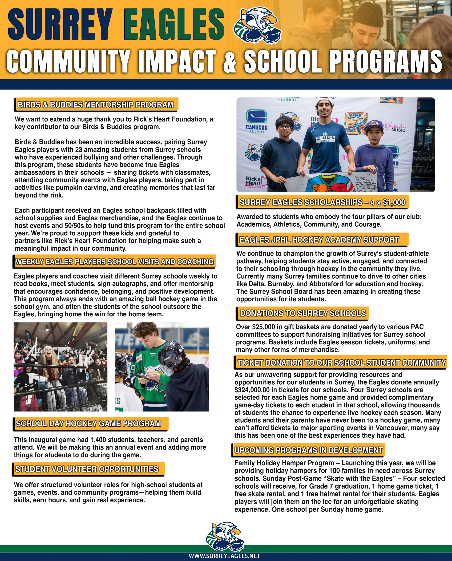This relationship is not just about hockey; it is about creating lasting bonds and providing opportunities for young athletes to aspire and grow. The Eagles and their fans continue to thrive, making Surrey a place where sports and community pride go hand in hand.